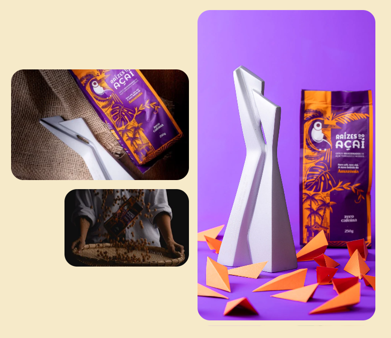 Os vídeos e fotos da Lenses ficaram sensacionais! Conseguimos mostrar a essência da marca e o resultado veio: nossa embalagem do Raízes do Açaí ganhou o Troféu de Prata!